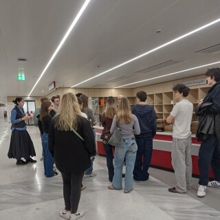 Der erste Programmpunkt führte – begleitet von einem Guide – in die Tiefen des Bücherspeichers am Heldenplatz. Dort erhielten die Schüler:innen einen konzentrierten Einblick in die Welt des archivierten Wissens und konnten bestaunen, wie viele Millionen Druckwerke hier lagern und wie sorgfältig das Wissen vergangener Jahrhunderte bewahrt wird.