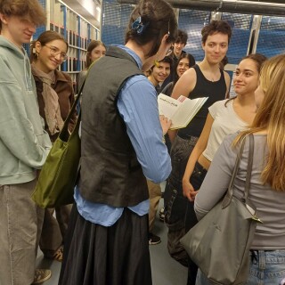 Zum Abschluss nutzte die Gruppe das sonnige Wetter und setzte sich am Heldenplatz mit Thomas Bernhards »Heldenplatz« auseinander. Der historische Ort bot einen passenden Rahmen, um das Stück, dessen Skandal und die Bedeutung Platzes selbst zu besprechen.